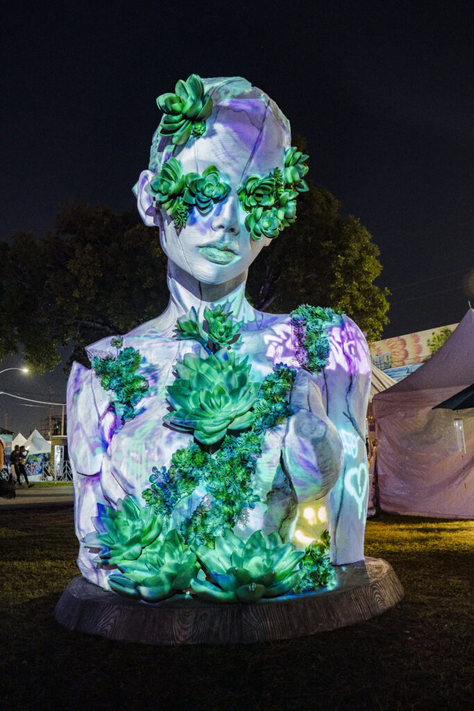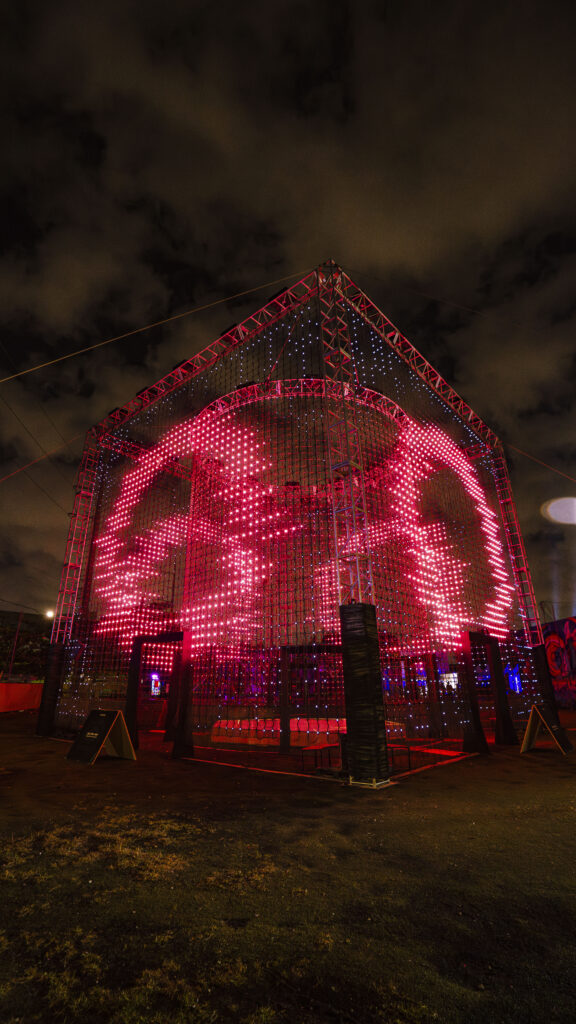 But the magic of the weekend extended far beyond the stages. The RC Cola Plant has always had artistic bones, but Art With Me transformed it. Massive installations, live painting, projection art and serene pockets dedicated to breathwork and mindfulness broke up the intensity of the dance floors. The centerpiece was the Apotheneum, a 30-foot illuminated cylinder within a 40-foot cube, built from 26,000 LEDs. It created an immersive sound and fully multi-sensory environment where attendees could lie down at the base and look up at the countless lights. You could drift from a meditative sound bath straight into a thumping techno set without ever feeling the experience was disjointed – the transitions were the point.