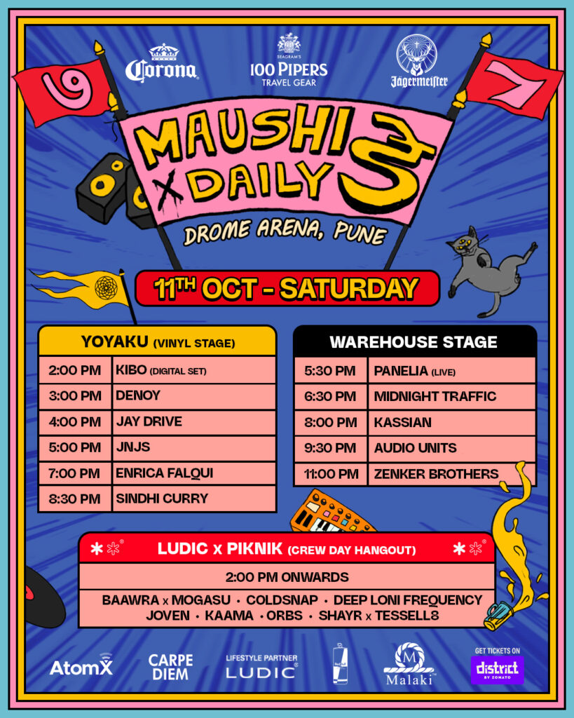 Maushi x Daily Day has now evolved into a multi-stage boutique festival that celebrates music, art, culinary delights, fashion and culture. This year’s edition is particularly special as it marks their 7th anniversary. Over the past two years, they have partnered with The Daily All Day (India’s finest cocktail bar) to expand this festival into an even more diverse and dynamic experience.