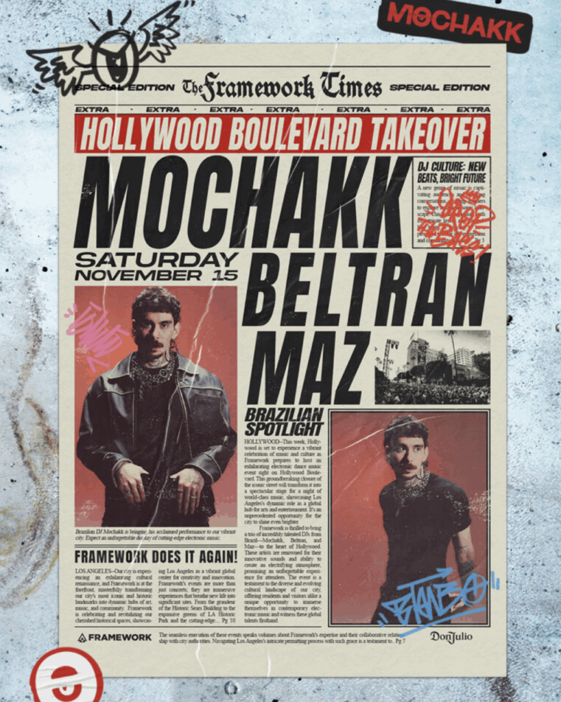 The event production company has curated shows in iconic locations across Los Angeles, including Hollywood Boulevard, Las Palmas Avenue, Gin Ling Way, California Plaza, and the SCI-ARC League of Shadows Pavilion. Just last weekend, on Saturday, September 6, Framework launched The Rio Grande Lot, setting the stage for what promises to be an epic outdoor season closing party at Reframe Studios Outdoors.