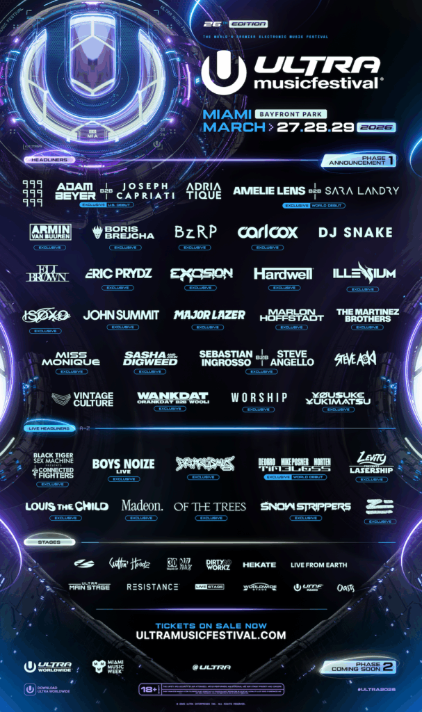 The post Ultra Music Festival Drops Epic Phase 1 Lineup for 2026 appeared first on EDMTunes.