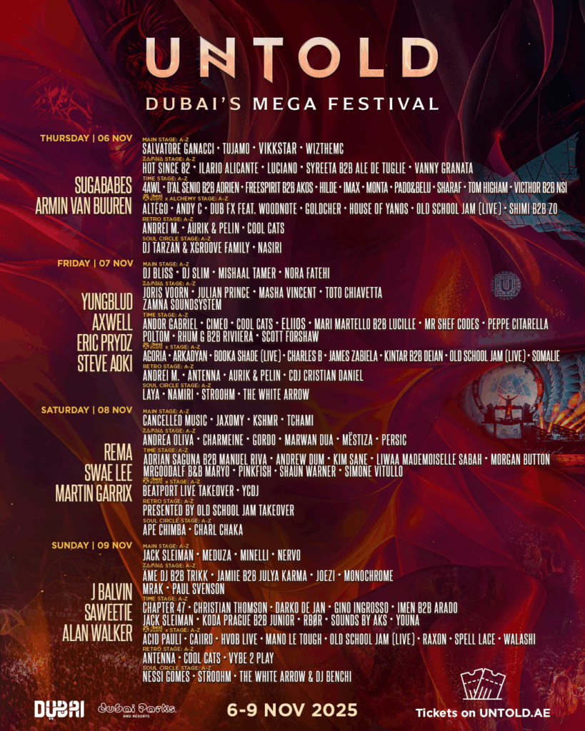The organizers of UNTOLD Dubai have now unveiled the full day-by-day lineup, and fans can download the app to create their lineup with their favorite artists.